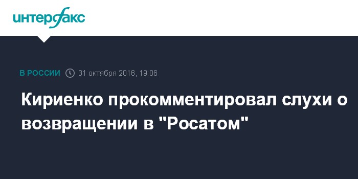 Москва. 31 октября. INTERFAX.RU - Первый замглавы администрации президента РФ Сергей Кириенко отказался комментировать появившуюся в СМИ информацию о его возможном назначении главой наблюдательного совета "Росатома".