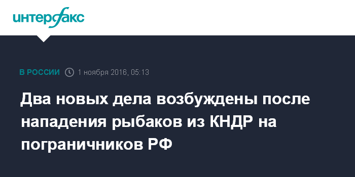 Москва. 1 ноября. INTERFAX.RU - Еще два уголовных дела возбуждено в Приморье после нападения в Японском море северокорейских моряков на российских пограничников, всего возбуждено шесть уголовных дел.