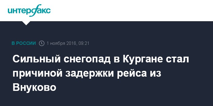 "Из-за сильного снегопада сегодня ночью аэропорт Кургана был закрыт, и рейс из Внуково еще не вылетел. В настоящее время мы очистили посадочную полосу и готовы принять рейс", - сказала собеседник агентства.