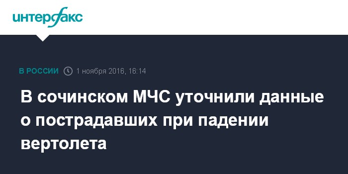 В сочинском МЧС уточнили данные о пострадавших при падении вертолета