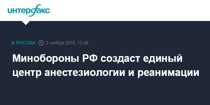 Минобороны РФ создаст единый центр анестезиологии и реанимации