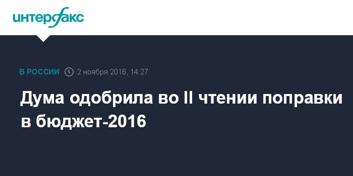 Москва. 2 ноября. INTERFAX.RU - Госдума на заседании в среду одобрила во втором чтении проект поправок в федеральный бюджет 2016 года с рядом изменений по сравнению с первоначальной версией законопроекта.