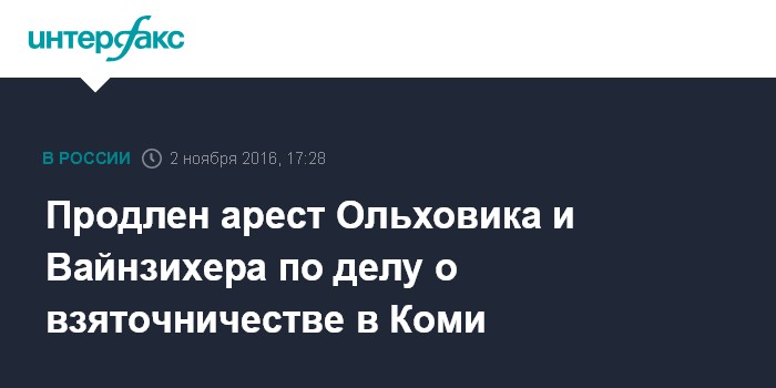 Продлен арест Ольховика и Вайнзихера по делу о взяточничестве в Коми