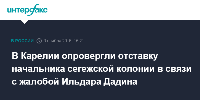 В Карелии опровергли отставку начальника сегежской колонии в связи с жалобой Ильдара Дадина