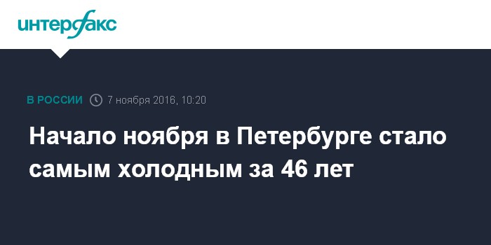 Москва. 7 ноября. INTERFAX.RU - Синоптики Петербурга отмечают аномальную погоду в северной столице в первой декаде ноября: столь низкие температуры в последний раз отмечались 46 лет назад.