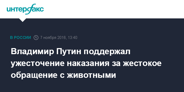 "Президент, безусловно, считает, что такая законодательная инициатива (об ужесточении наказаний за жестокое обращение с животными - ИФ) имела бы право на существование", - сказал он.