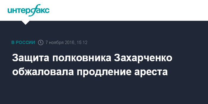 Защита полковника Захарченко обжаловала продление ареста