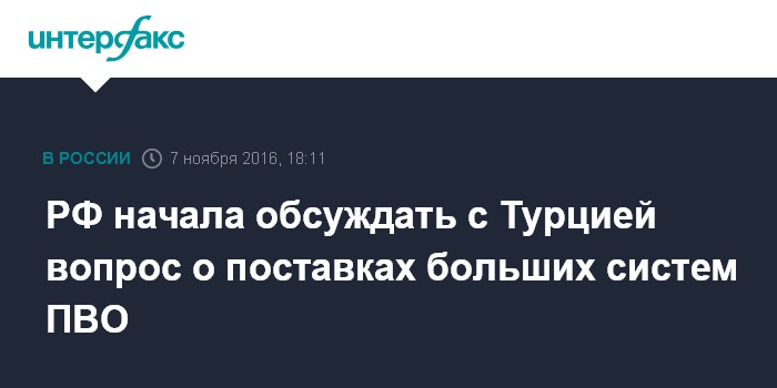 РФ начала обсуждать с Турцией вопрос о поставках больших систем ПВО