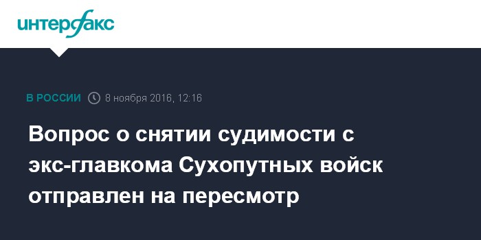 Вопрос о cнятии судимости с экс-главкома Сухопутных войск отправлен на пересмотр