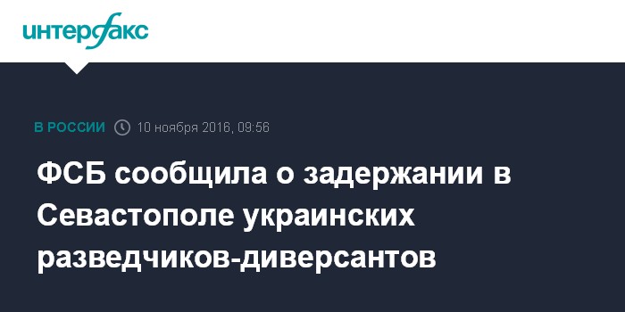"ФСБ 9 ноября в Севастополе задержаны члены диверсионно-террористической группы Главного управления разведки Минобороны Украины, планировавшие совершение диверсионных акций на объектах военной инфраструктуры и жизнеобеспечения полуострова Крым", - отметили в ЦОС.