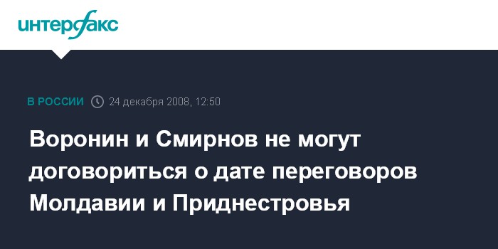 Москва. 24 декабря. INTERFAX.RU - Президент Молдавии Владимир Воронин и лидер Приднестровья Игорь Смирнов не могут договориться о возобновлении переговорного процесса.