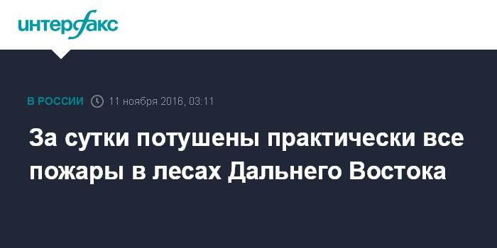Москва. 11 ноября. INTERFAX.RU - Четыре лесных пожара зарегистрировали в лесах одного региона на Дальнем Востоке, три из них удалось ликвидировать, сообщает пресс-служба департамента лесного хозяйства по Дальневосточному федеральному округу.