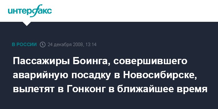 Пассажиры Боинга, совершившего аварийную посадку в Новосибирске, вылетят в Гонконг в ближайшее время
