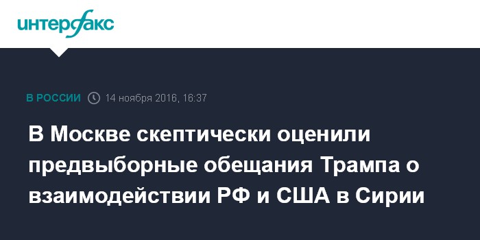 В Москве скептически оценили предвыборные обещания Трампа о взаимодействии РФ и США в Сирии