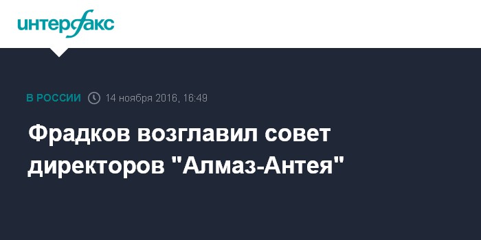 9 ноября стало известно, Фрадков распоряжением главы российского правительства Дмитрия Медведева выдвинут в состав совета директоров "Концерна ВКО "Алмаз-Антей".