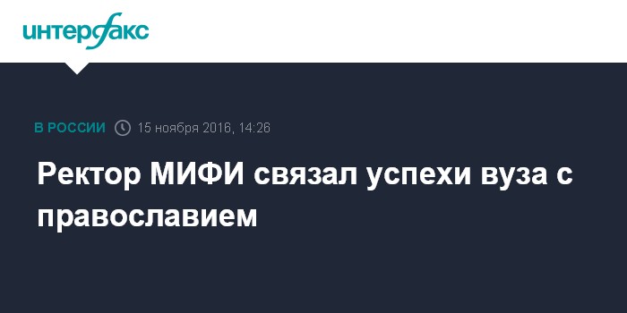 Москва. 15 ноября. INTERFAX.RU - Ректор Национального исследовательского ядерного университета (МИФИ) Михаил Стриханов связывает успехи этого учреждения с православием.