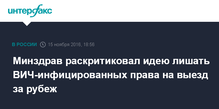 Минздрав раскритиковал идею лишать ВИЧ-инфицированных права на выезд за рубеж