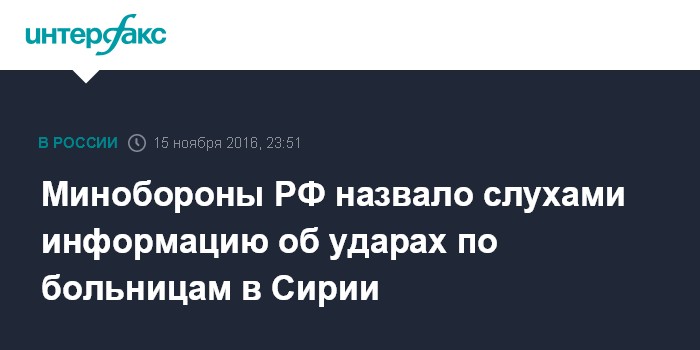 Минобороны РФ назвало слухами информацию об ударах по больницам в Сирии