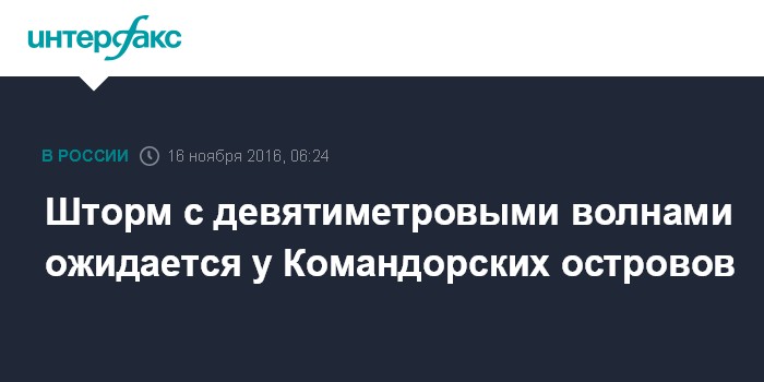 Москва. 16 ноября. INTERFAX.RU - Штормовое предупреждение объявлено в Беринговом море возле Командорских островов, сообщает в среду ГУ МЧС России по Камчатскому краю.