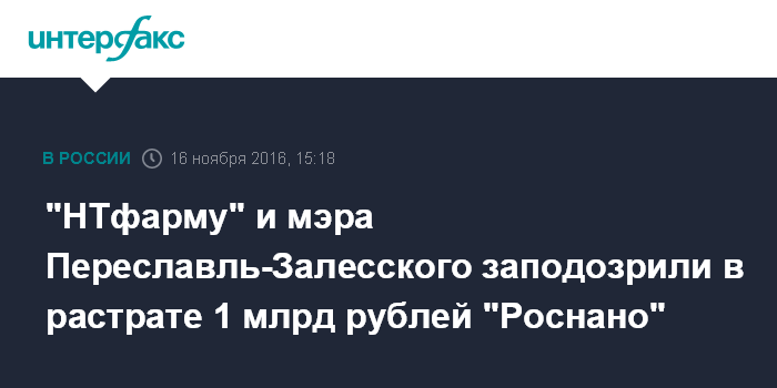 "НТфарму" и мэра Переславль-Залесского заподозрили в растрате 1 млрд рублей "Роснано"