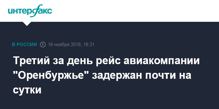 Третий за день рейс авиакомпании "Оренбуржье" задержан почти на сутки