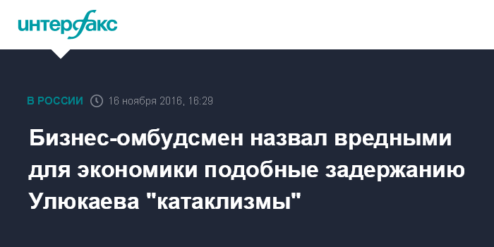Бизнес-омбудсмен назвал вредными для экономики подобные задержанию Улюкаева "катаклизмы"