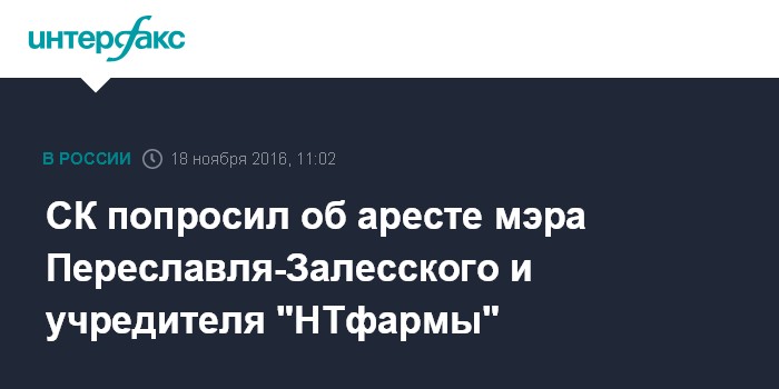 СК попросил об аресте мэра Переславля-Залесского и учредителя "НТфармы"