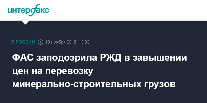 ФАС заподозрила РЖД в завышении цен на перевозку минерально-строительных грузов