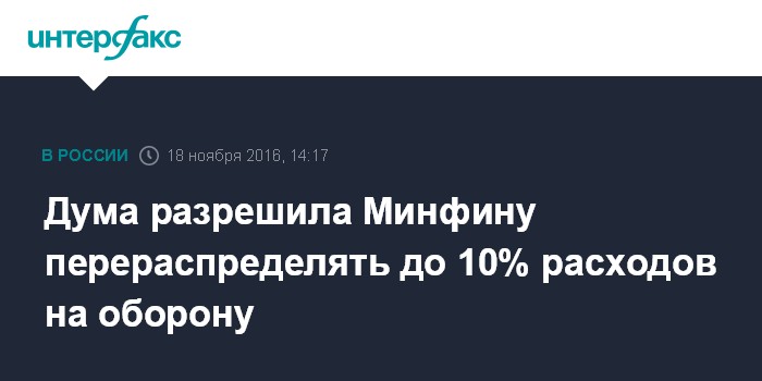 Дума разрешила Минфину перераспределять до 10% расходов на оборону