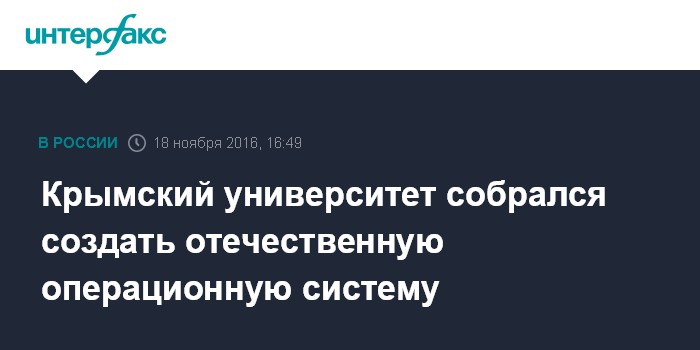 Москва. 18 ноября. INTERFAX.RU - Крымский федеральный университет (КФУ) им. В.И.Вернадского работает над созданием операционной системы отечественного производства, сообщила пресс-служба вуза.