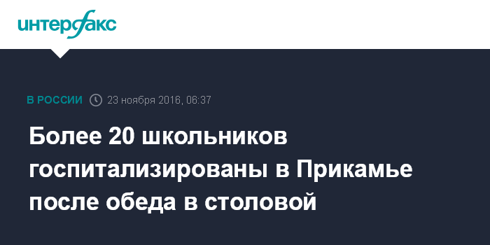"К вечеру в стационар Верещагинской центральной районной больницы были госпитализированы 24 учащихся 2-4 классов с диагнозом "острый энтероколит" в результате отравления продуктами питания", - говорится в сообщении.