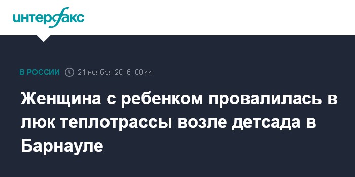 Москва. 24 ноября. INTERFAX.RU - В Барнауле (Алтайский край) спасли жительницу и ее ребенка, провалившихся в незакрытый люк теплотрассы, сообщает в четверг пресс-центр мэрии города.