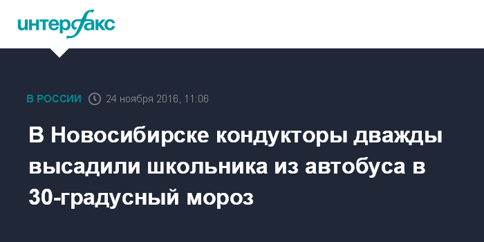 Москва. 24 ноября. INTERFAX.RU - Следственные органы СКР по Новосибирской области проводят проверку инцидента со школьником, которого кондукторы автобусов дважды высаживали из транспорта в сильный мороз.