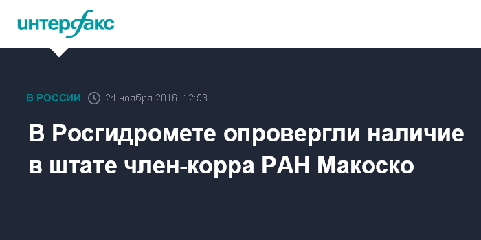 "Росгидромет заявляет, что Макоско Александр Аркадьевич не служит в Росгидромете и не является заместителем руководителя Росгидромета с 2014 года", - сообщили "Интерфаксу" в пресс-службе Росгидромета в четверг.