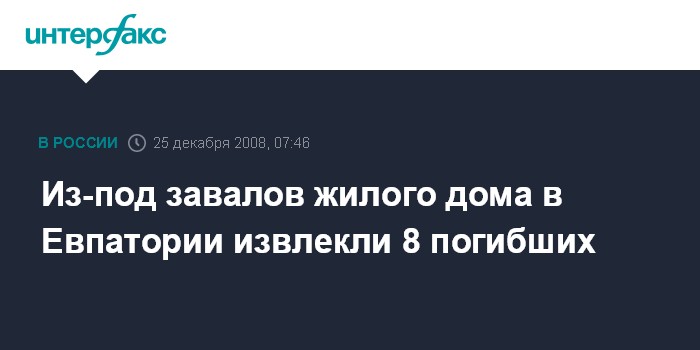 Киев. 25 декабря. ИНТЕРФАКС-УКРАИНА - Из-под завалов жилого дома в Евпатории, в котором накануне вечером произошел взрыв, спасатели извлекли тела еще 6 погибших.