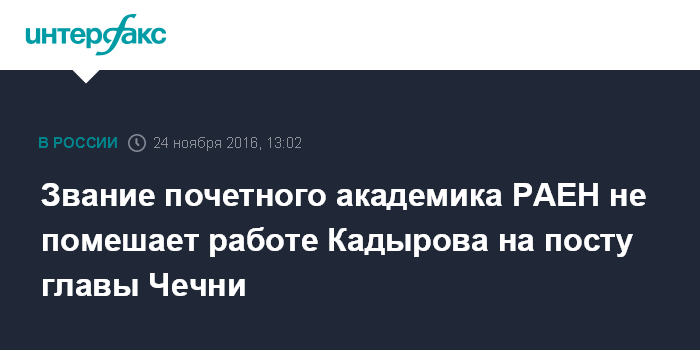 Звание почетного академика РАЕН не помешает работе Кадырова на посту главы Чечни