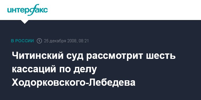 Читинский суд рассмотрит шесть кассаций по делу Ходорковского-Лебедева