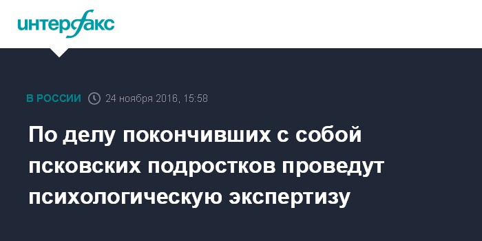 Москва. 24 ноября. INTERFAX.RU - Погибшим в Стругах Красных (Псковская область) подросткам будет назначена посмертная психолого-психиатрическая судебная экспертиза, сообщает пресс-служба регионального следственного управления СКР.