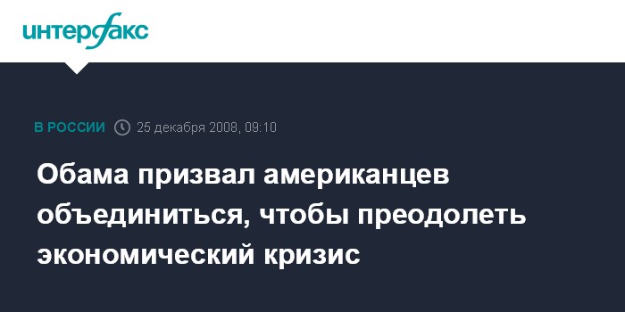 Москва. 25 декабря. INTERFAX.RU - Избранный президент США Барак Обама обратился в среду к согражданам с призывом объединить усилия для преодоления экономического кризиса.