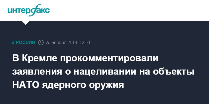 В ходе общения с журналистами Пескова попросили прокомментировать высказывания сенатора Франца Клинцевича о готовности перенацелить российское ядерное оружие на объекты НАТО в ответ на агрессивные действия альянса.
