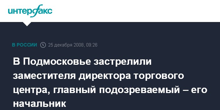 Москва. 25 декабря. INTERFAX.RU - В Подмосковном городе Юбилейный в среду вечером в квартире был обнаружен труп 45-летнего заместителя директора крупного торгового центра с двумя огнестрельными ранениями, сообщил "Интерфаксу" источник в правоохранительных органах региона в четверг.