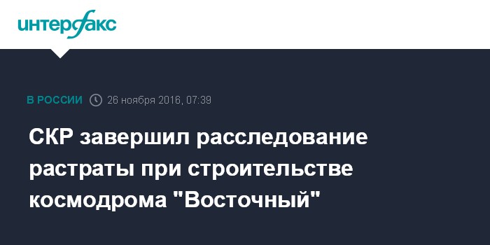 СКР завершил расследование растраты при строительстве космодрома "Восточный"