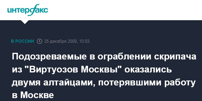 Подозреваемые в ограблении скрипача из "Виртуозов Москвы" оказались двумя алтайцами, потерявшими работу в Москве