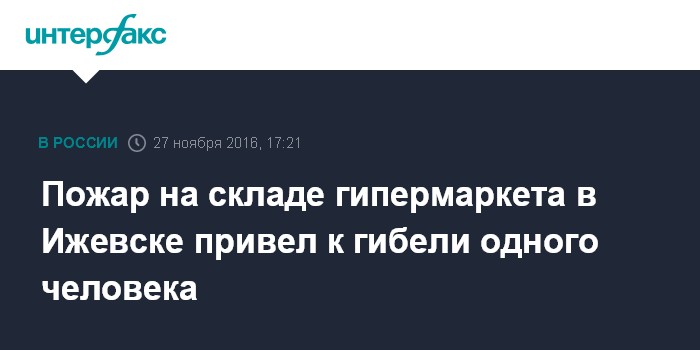 Пожар на складе гипермаркета в Ижевске привел к гибели одного человека