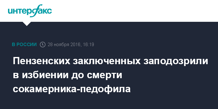 Москва. 28 ноября. INTERFAX.RU - Следственные органы Пензенской области возбудили уголовное дело по факту смерти в колонии осужденного за сексуальное насилие над малолетними.