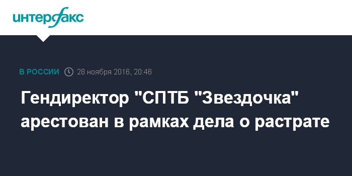 Гендиректор "СПТБ "Звездочка" арестован в рамках дела о растрате