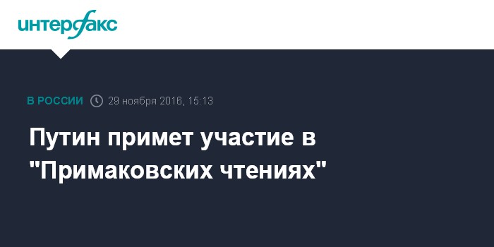 Москва. 29 ноября. INTERFAX.RU - Президент России Владимир Путин 30 ноября примет участие в заседании Международного форума "Примаковские чтения", посвященного изучению научного и политического наследия Евгения Примакова, сообщила пресс-служба Кремля.