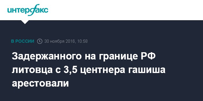 Москва. 30 ноября. INTERFAX.RU - Суд в Псковской области арестовал гражданина Литвы, задержанного на таможенном посту Шумилкино при въезде в РФ с крупной партией гашиша, сообщила в среду пресс-служба прокуратуры региона.