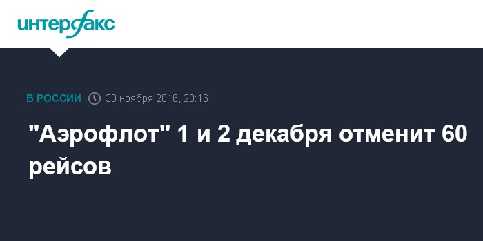 "Аэрофлот" 1 и 2 декабря отменит 60 рейсов