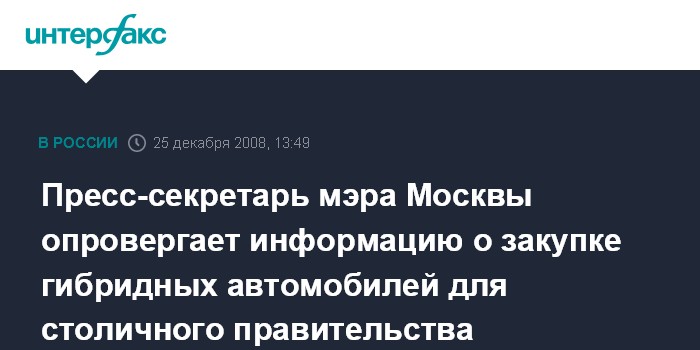 Пресс-секретарь мэра Москвы опровергает информацию о закупке гибридных автомобилей для столичного правительства